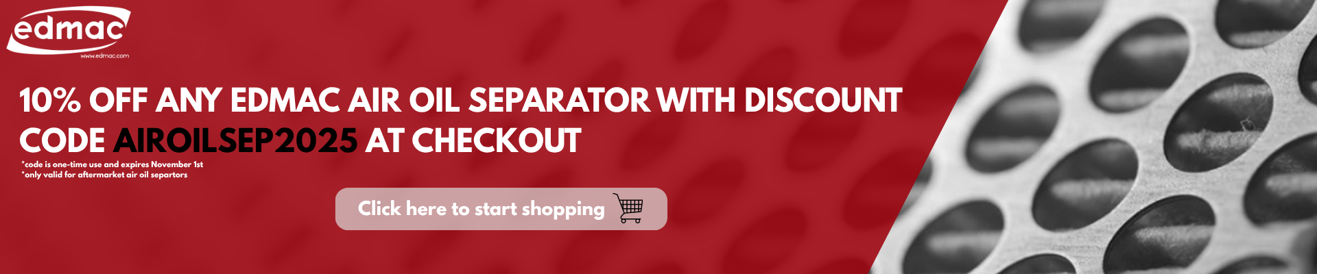 © 2025 Edmac Compressor Parts All Rights Reserved. Edmac is in no way authorized by Ingersoll Rand, Gardner Denver, Kaeser , Sullair, or any other original equipment manufacturer ("OEM") identified in this website. Edmac sells air compressor parts/lubricant/items that are interchangeable with OEM parts/lubricants/items. Unless expressly specified otherwise in the Description field in this website for a specific part/lubricant/item, the part/lubricant/item is not an OEM part/lubricant/item. All OEM names are trademarks or registered trademarks of each respective owner. Names, models, and part numbers of OEM manufacturers are used in this website for cross reference and compatibility purposes only.